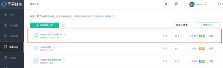 創(chuàng)建的自定義鏡像可通過左側的鏡像倉庫導航菜單查看。創(chuàng)建的自定義鏡像如下圖所示: