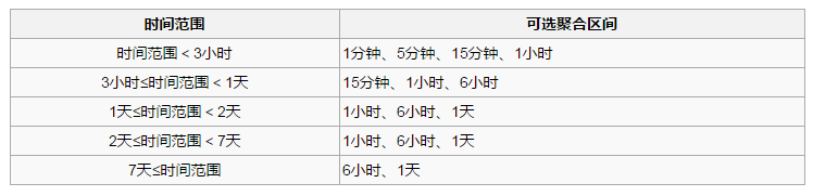 不同時間范圍對應不同聚合區(qū)間供選擇: