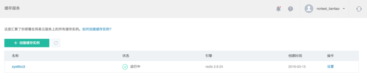 緩存服務管理入口位于網(wǎng)易蜂巢首頁的緩存服務選項,點擊「緩存服務」,顯示當前用戶的所有緩存實例列表。