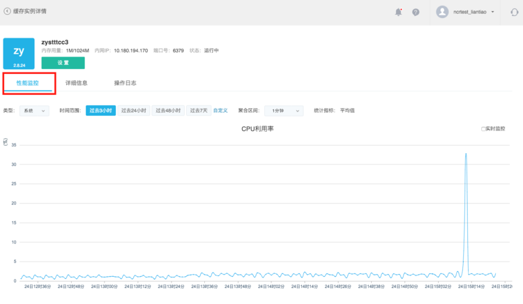 顯示當前實例的系統(tǒng)和 Redis 的性能監(jiān)控曲線。