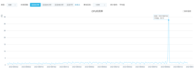 若通過快捷鍵設定時間范圍為「過去 3 小時」或「過去 24 小時」,我們提供實時監(jiān)控功能。勾選/取消勾選 各性能監(jiān)控數(shù)據(jù)曲線圖右上角的「實時監(jiān)控」,即可 開啟/關閉 監(jiān)控數(shù)據(jù)實時刷新。
