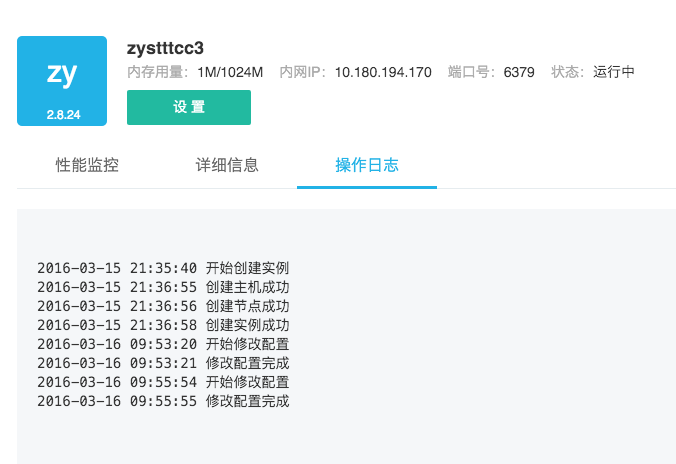 在「緩存服務」主界面,點擊該實例「操作欄」的「設置」按鈕;