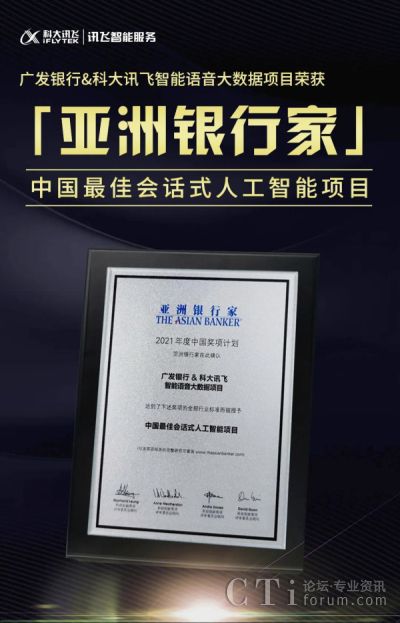 7月22日,由亞洲銀行家舉辦的“新時代,新金融,新融合”2021中國未來金融峰會在北京成功舉辦。經(jīng)過2021年中國獎項(xiàng)計劃嚴(yán)格的評審環(huán)節(jié),廣發(fā)銀行科大訊飛“智能語音大數(shù)據(jù)項(xiàng)目”達(dá)到全部行業(yè)標(biāo)準(zhǔn),被授予“中國最佳會話式人工智能項(xiàng)目”。作為目前金融服務(wù)行業(yè)內(nèi)最受尊重和認(rèn)可的年度獎項(xiàng)計劃之一,亞洲銀行家中國獎項(xiàng)計劃自2006年啟動,迄今已有16年的歷史。