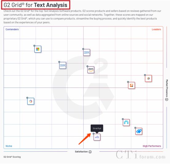 在這方面Stratifyd擁有突出的優(yōu)勢(shì)。憑借卓越的技術(shù)創(chuàng)新和行業(yè)應(yīng)用實(shí)例,Stratifyd多次榮膺權(quán)威分析和研究機(jī)構(gòu)的推薦。Stratifyd曾榮獲Gartner分析領(lǐng)域最佳廠商獎(jiǎng)項(xiàng),并連續(xù)五年上榜Forrester優(yōu)秀數(shù)據(jù)分析廠商榜單。2021年初在G2 Crowd發(fā)布的冬季Grid評(píng)估報(bào)告中成功入選文本分析軟件高成長(zhǎng)者象限,在數(shù)據(jù)分析領(lǐng)域具備高增長(zhǎng)潛力。