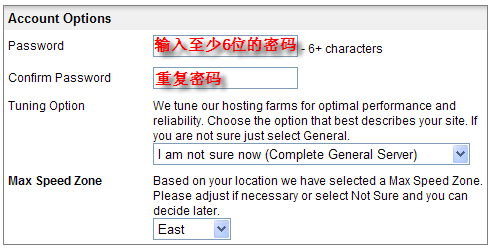 7、賬戶(hù)選項(xiàng)這里只要輸入密碼,其他兩項(xiàng)采用默認(rèn)設(shè)置即可,見(jiàn)下圖。