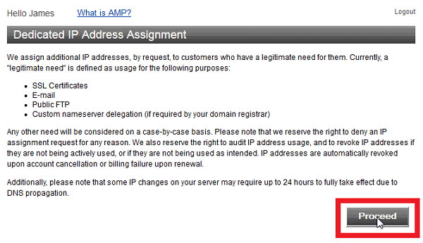 3、 閱讀IP地址分配免責(zé)聲明,確認(rèn)后點(diǎn)擊“Proceed”,如圖4所示;