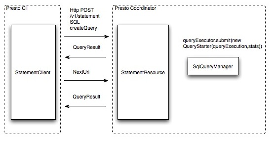 Cli通過(guò)HTTP協(xié)議提交SQL查詢之后,查詢請(qǐng)求封裝成一個(gè)SqlQueryExecution對(duì)象交給Coordinator的SqlQueryManager#queryExecutor線程池去執(zhí)行