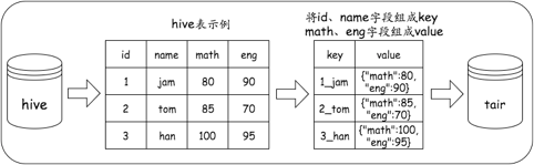 美團(tuán)目前的數(shù)據(jù)生產(chǎn)主體是通過ETL將原始的日志通過清洗、轉(zhuǎn)換等步驟后加載到Hive表中。而很多線上業(yè)務(wù)需要將Hive表里面的數(shù)據(jù)以一定的規(guī)則組成鍵值對(duì),導(dǎo)入到Tair中,用于上層應(yīng)用快速訪問。其中大部分的需求邏輯相同,即把Hive表中幾個(gè)指定字段的值按一定的規(guī)則拼接成key值,另外幾個(gè)字段的值以json字符串的形式作為value值,最后將得到的對(duì)寫入Tair。