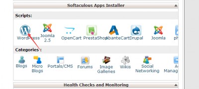 1.登錄bluehost主機(jī)控制面板,在首頁下拉頁面找到“Softaculous Apps Installer”欄目,里面有多中應(yīng)用程序,選擇“WordPress”,點(diǎn)擊。