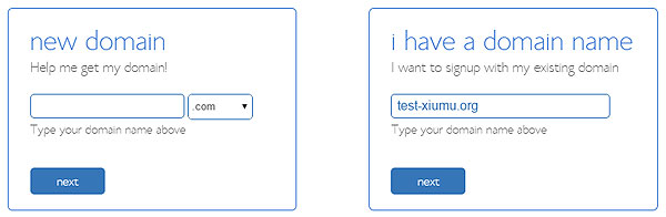 點(diǎn)擊Get Started Now按鈕,它會讓你選擇注冊新域名,還是使用自己的域名做主域名