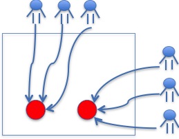 對于協(xié)同過濾而言,user之間或者deal之間的圖距離是兩跳,對于更遠(yuǎn)距離的關(guān)系則不能考慮在內(nèi)。而圖算法可以打破這一限制,將user與deal的關(guān)系視作一個二部圖,相互間的關(guān)系可以在圖上傳播。Simrank[2]是一種衡量對等實(shí)體相似度的圖算法。它的基本思想是,如果兩個實(shí)體與另外的相似實(shí)體有相關(guān)關(guān)系,那它們也是相似的,即相似性是可以傳播的。