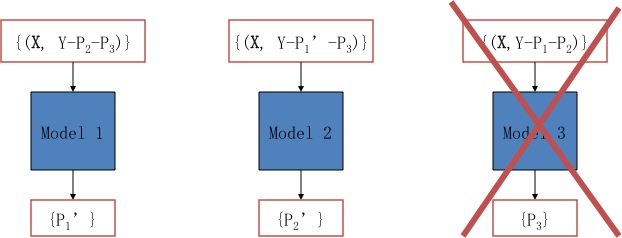 每一個Grove有多棵樹組成,在訓(xùn)練時每棵樹的擬合目標(biāo)為真實(shí)值與其他樹預(yù)測結(jié)果之和之間的殘差。當(dāng)達(dá)到給定數(shù)目的樹時,重新訓(xùn)練的樹會逐棵替代以前的樹。經(jīng)過多次迭代后,達(dá)到收斂。