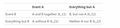 k21 :Event A發(fā)生,Event B未發(fā)生的次數(shù)