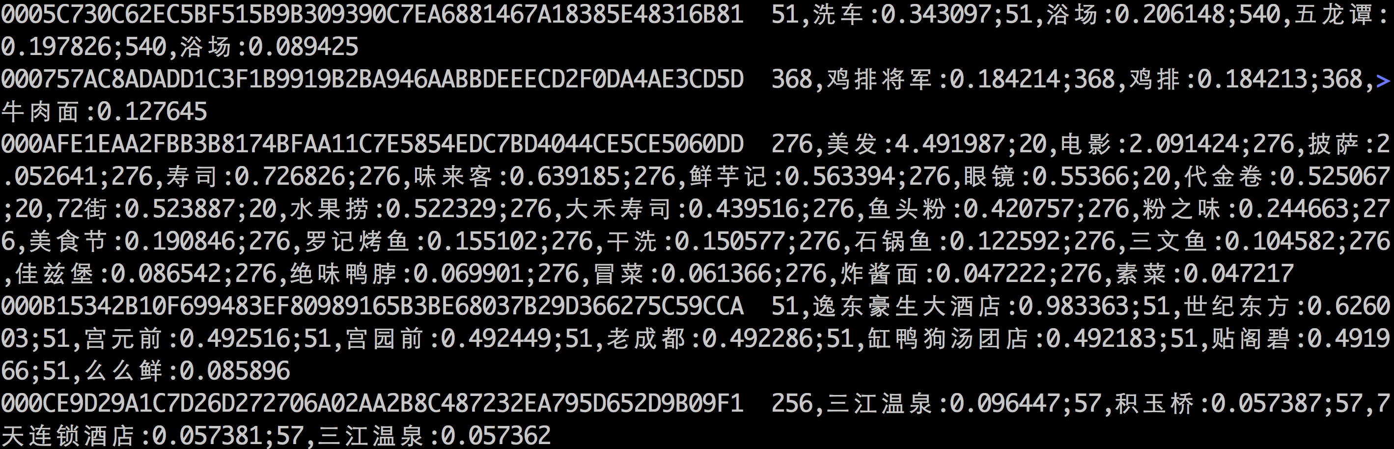 當(dāng)用戶再次請求時,根據(jù)用戶對不同query的權(quán)重及query下不同deal的權(quán)重進(jìn)行加權(quán),取出權(quán)重最大的TopN進(jìn)行推薦。