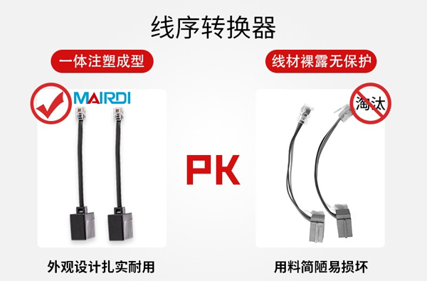 產品配件細節(jié)麥爾迪也嚴格把控,水晶頭轉接線不得不提,沒有對比,就沒有傷害,某些友商配件大多是低品質的,甚至線材裸露看起來非常的“脆弱”,你敢用嗎?然而面對現(xiàn)實方位、思科、億聯(lián)需要三個耳機才行?麥爾迪(MAIRDI)線序轉接線,小小的身軀,大大的能量,一體注塑成型。買一送二,一個耳機滿足三種線序轉換,實現(xiàn)眾多話機品牌兼容。