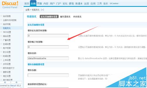 9、進入-性能優(yōu)化->論壇頁面緩存設置->緩存論壇首頁有效期/緩存帖子有效期/緩存系數(shù)全部為0。