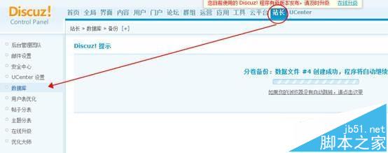 2、找到站長板塊,點擊數(shù)據(jù)庫,進行備份。