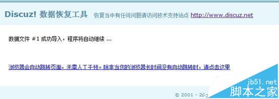 20、點擊確定,開始恢復。恢復數(shù)據(jù)的整個過程會在一個新頁面完成,您成功恢復數(shù)據(jù)后請務必及時刪除restore.php文件。