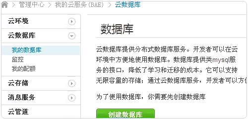 4、進(jìn)入云數(shù)據(jù)庫 :http://developer.baidu.com/bae/bdbs/db/