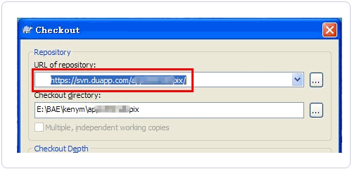 5、URL框輸入應(yīng)用的SVN地址,剛才提示過讓你記下SVN地址備用,點(diǎn)擊“確定”,之后會(huì)提示輸入(百度)賬號(hào)及密碼即可。