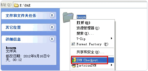 4、我這里簡要的說明如何上傳,本地創(chuàng)建一個(gè)用于存放從SVN倉庫中checkout的代碼的文件夾,點(diǎn)擊文件夾右鍵,點(diǎn)擊“SVN Checkout”(SVN 檢出)