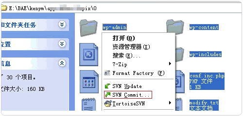 3、全選WP文件,右鍵——“TortoiseSVN”——“Add”(增加)
