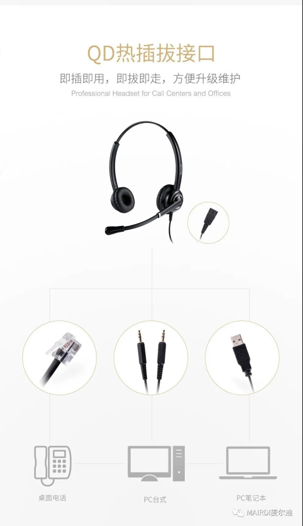 麥爾迪(MAIRDI)MRD-612DNC以升級(jí)維護(hù)無(wú)憂(yōu)為前提,專(zhuān)業(yè)設(shè)計(jì)QD熱拔插接口,只需一部耳機(jī),連接不同配線(xiàn),即可實(shí)現(xiàn)不同設(shè)備間自由轉(zhuǎn)換,手機(jī)、電腦、電話(huà)機(jī),即插即用、即拔即走,升級(jí)維護(hù)無(wú)憂(yōu)。