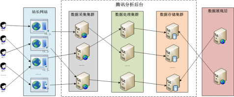 TA的基本原理是通過嵌入站長網(wǎng)站的JavaScript腳本收集用戶訪問行為數(shù)據(jù),并發(fā)送TA采集集群,采集集群收到數(shù)據(jù)后將其過濾、編碼、格式化后繼續(xù)向后分發(fā)。數(shù)據(jù)處理集群負(fù)責(zé)按照業(yè)務(wù)邏輯計(jì)算數(shù)據(jù),并將計(jì)算結(jié)果“寫入”到數(shù)據(jù)存儲(chǔ)集群,最后將結(jié)果數(shù)據(jù)展現(xiàn)給廣大站長使用。TA的基本原理如圖所示。