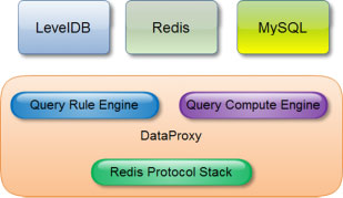 Redis Protocol Stack是一個(gè)較為完整的Redis協(xié)議棧,是上層應(yīng)用的基礎(chǔ)。直接用Redis協(xié)議作為對(duì)外提供查詢的通用協(xié)議,這樣外部用戶可直接通過目前各種Redis Client實(shí)現(xiàn)來查詢?cè)L問數(shù)據(jù)。Query Rule Engine是一個(gè)靈活的查詢引擎。能夠根據(jù)規(guī)則智能地在多個(gè)Redis、LevelDB數(shù)據(jù)源中查詢,執(zhí)行類join的操作;也簡(jiǎn)單擴(kuò)展支持其他的異構(gòu)數(shù)據(jù)源,如MySQL、HBase等。