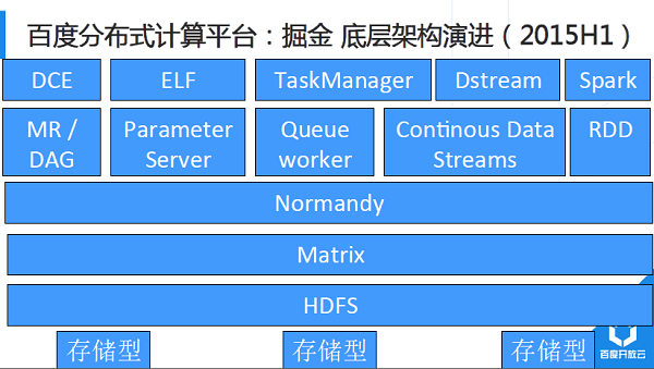 2015年的架構(gòu)改進,主要是將所有的計算模型均遷移到Matrix+Normandy架構(gòu)。Normandy兼容社區(qū)Yarn調(diào)度接口,開源社區(qū)新型興計算平臺可以很輕松的接入到百度的計算生態(tài)里。