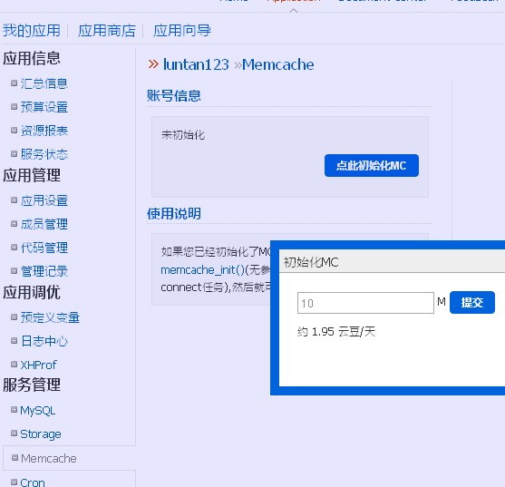登陸你的SAE應(yīng)用管理后臺,點(diǎn)擊mysql,初始化數(shù)據(jù)庫。