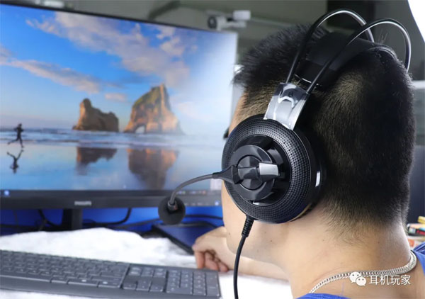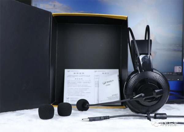 耳機并沒有配置常見3.5接口,而是采用USB接口,內(nèi)置獨立聲卡,即插即用無需驅(qū)動,這點還是比較方便的,省去不少繁瑣的操作??磥碇饕请娔X端使用了。