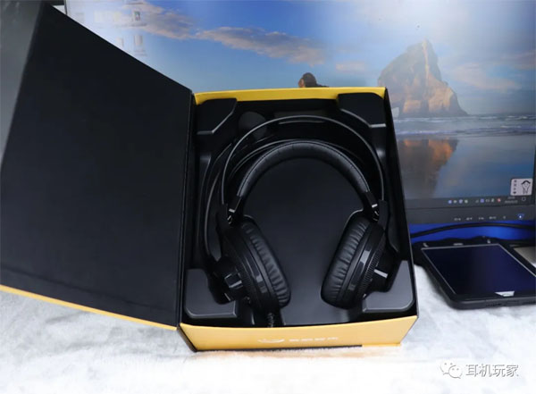 在幾乎全黑配色的耳機里,搭配黃鸝色logo,就好像是黑暗中的曙光。