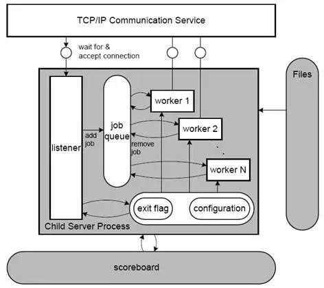 apache收到請求,轉(zhuǎn)發(fā)給Mongrel,由Mongrel負(fù)責(zé)實(shí)際處理,apache則騰出手來,迎接下一位用戶。但apache能夠接待的用戶數(shù)總是有限的,它的并發(fā)數(shù)受apache能夠容納的工作進(jìn)程數(shù)量,這里不細(xì)究apache內(nèi)部原理,圖如下: