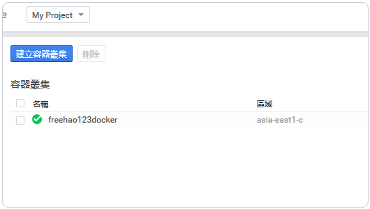1、在Google Container Engine列表中可以看到已經(jīng)創(chuàng)建好的容器。