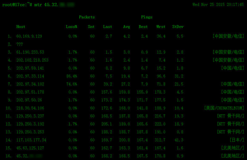 性價(jià)比雖不錯(cuò),那對(duì)國(guó)內(nèi)環(huán)境來(lái)說(shuō)網(wǎng)絡(luò)情況又如何,下面是不同運(yùn)營(yíng)商的tracert路由跟蹤截圖,和超級(jí)ping工具的測(cè)試供參考。