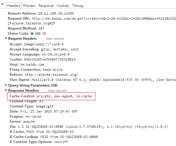 Cache-control: private 意味著這個文件對不同的用戶是不同的。只有用戶自己的瀏覽器能夠進行緩存,公共的代理服務(wù)器不允許緩存。
