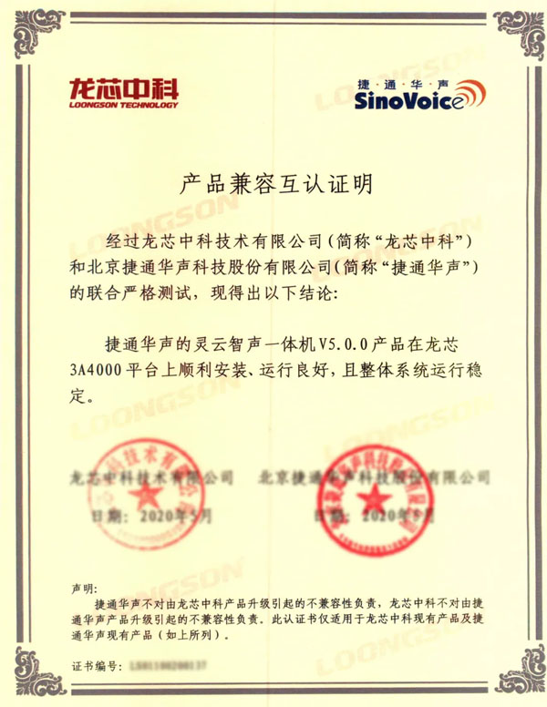 近日,捷通華聲推出的最新產(chǎn)品“靈云智聲”與龍芯中科最新發(fā)布的龍芯3A4000處理器,及統(tǒng)信操作系統(tǒng)V2.0完成兼容性適配認證,這是繼與中標麒麟、銀河麒麟、統(tǒng)信UOS和達夢數(shù)據(jù)庫等國產(chǎn)IT產(chǎn)品完成兼容互認證后,捷通華聲的又一國產(chǎn)適配力作。本次兼容認證測試涵蓋了產(chǎn)品安裝卸載測試、產(chǎn)品基本功能測試、產(chǎn)品運行穩(wěn)定性測試等,測試結(jié)果表明,雙方產(chǎn)品兼容性良好、功能正常、運行穩(wěn)定,靈云智聲在龍芯CPU上順暢運行。