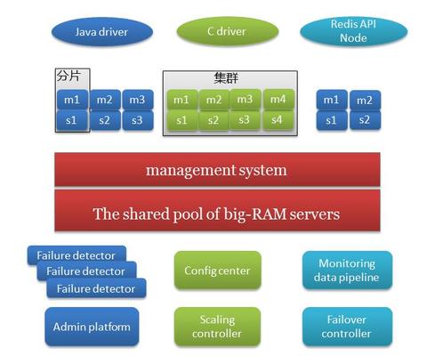 這個系統(tǒng)從部署結構來講,是單個物理服務器、多實力的結構,任何大內(nèi)存物理servers上都會部署多個內(nèi)存,好處是便于流量監(jiān)控等,但是給業(yè)務和監(jiān)控帶來很多復雜性。對行業(yè)來說目前還是比較合理,故障的檢測與切換,擴容的管理、升級、監(jiān)控等都是獨立的模塊。存儲的servers是復用原來redis網(wǎng)絡編程的框架,但是復制的協(xié)議、存儲的引擎等各方面都是自己來開發(fā)。