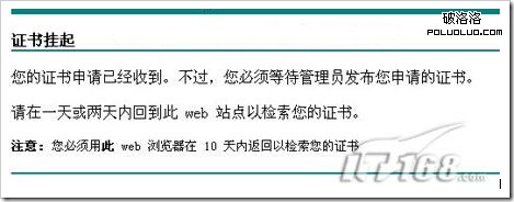 第七步:成功申請后出現(xiàn)證書掛起提示,說明證書申請已經(jīng)收到,等待管理員通過申請認證。(如圖27)