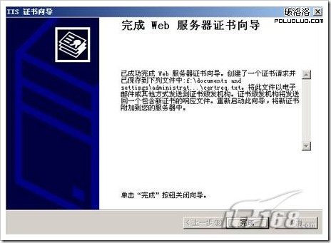 第十二步:完成了IIS證書向導配置工作,并按照要求將相應的證書文件保存到桌面。