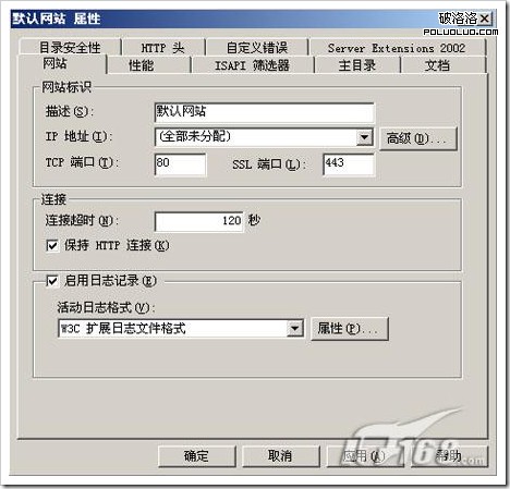 第五步:再次來到默認網(wǎng)站屬性中的網(wǎng)站標簽,可以看到SSL端口已經(jīng)配置了端口信息——443。如圖: