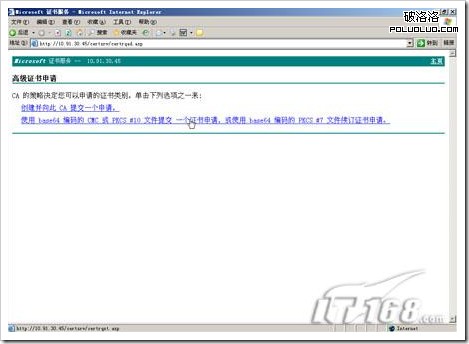 第一步:打開IE瀏覽器在地址欄中輸入http://10.91.30.45/certsrv/打開證書服務界面。(服務器IP地址為10.91.30.45)