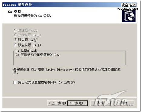 第五步:在windows組件向導CA類型設置窗口中選擇獨立根CA。