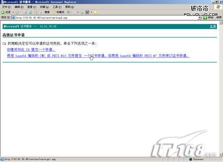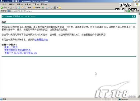 第一步:打開IE瀏覽器在地址欄中輸入http://10.91.30.45/certsrv/打開證書服務界面。(服務器IP地址為10.91.30.45)(如圖22)