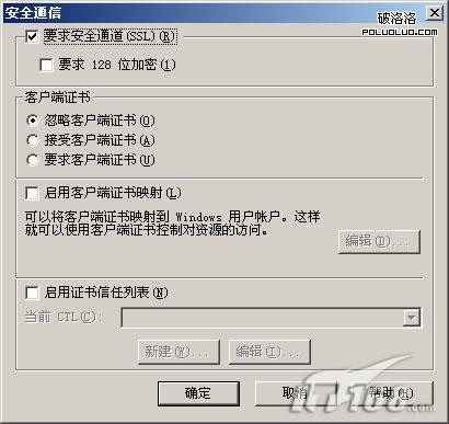 第四步:這時我們就可以設置SSL參數(shù)了,在安全通信屬性中將”要求安全通道SSL”前打上對勾,從而啟用了IIS站點的SSL加密功能。(如圖33)