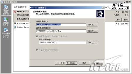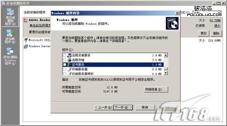 第三步:安裝證書服務,通過控制面板中的添加/刪除程序,選擇添加/刪除windows組件。在windows組件向?qū)е姓业?ldquo;證書服務”,前面打勾后點“下一步”。(如圖2)