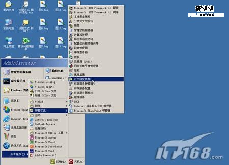 第一步:我們選擇任務欄的“開始->程序->管理工具->證書頒發(fā)機構(gòu)”。(如圖28)