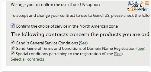 8、勾選同意Gandi.net的服務(wù)條款。