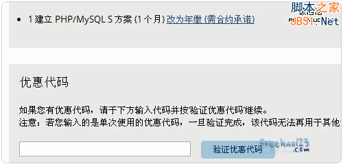 4、最后,輸入主機(jī)空間免費(fèi)優(yōu)惠碼,點(diǎn)擊驗(yàn)證。